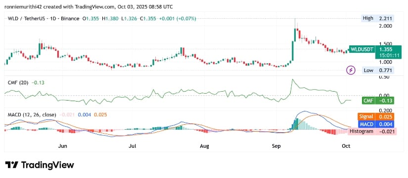 Worldcoin (WLD) 持稳于1.34美元,交易者关注关键均线支撑位