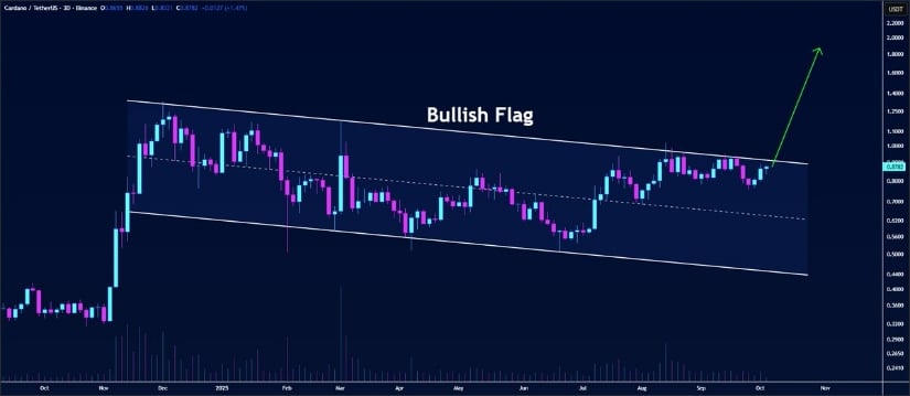 卡尔达诺看涨旗形预示突破潜力,目标区间1.50-2.00美元。数据来源:Butterfly via X