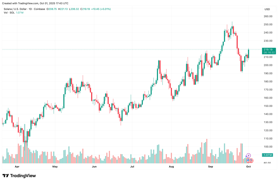 Solana正从比特币(BTC)和以太坊(ETH)两大主流加密货币手中抢夺聚光灯——基于SOL的加密投资产品近期吸纳了2.91亿美元资金流入。截至发稿,SOL报价219.19美元,24小时涨幅6.7%。