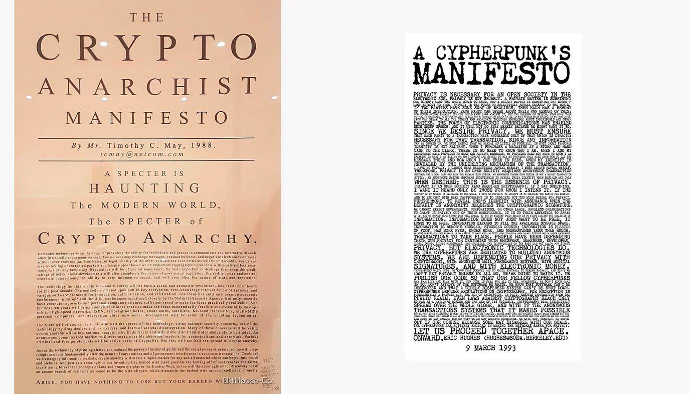 后续《密码无政府主义宣言》(The Crypto Anarchist Manifesto)和《密码庞克宣言》两份文件的发表为隐私赛道的诞生奠定了思想基础:「我们密码庞克致力于构建匿名系统。我们用密码学捍卫隐私。」