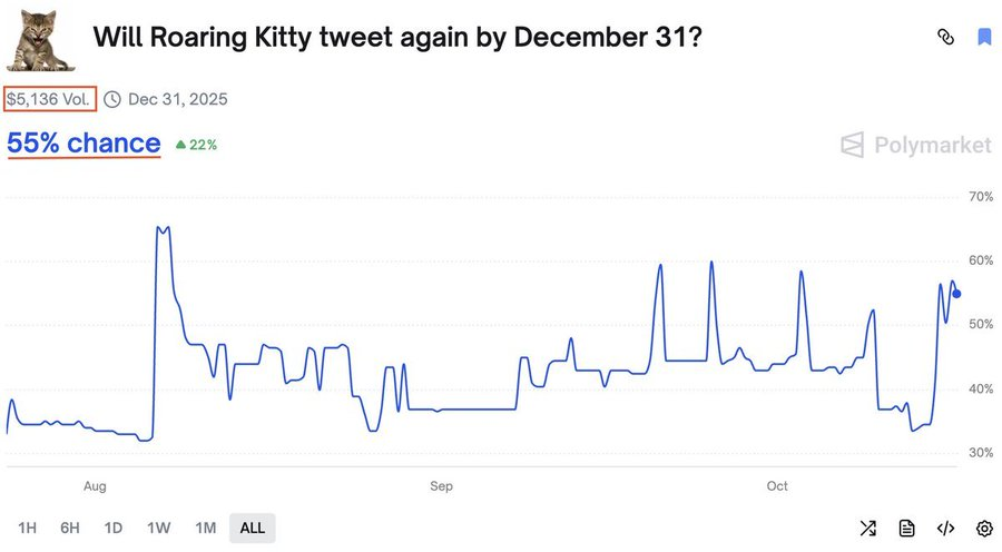 但后来交易量只增加了 500 美元,却显著影响了价格,把概率推高到了 55%。