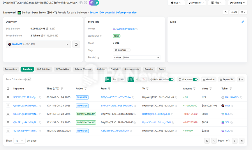 此外,LIBRA 丑闻的核心人物 Hayden Davis,同样在 MET 空投中获得了价值约 150 万美元的代币。