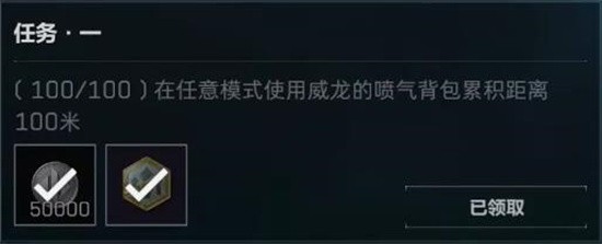 1、在游戏当中使用威龙喷气背包飞行100米。
