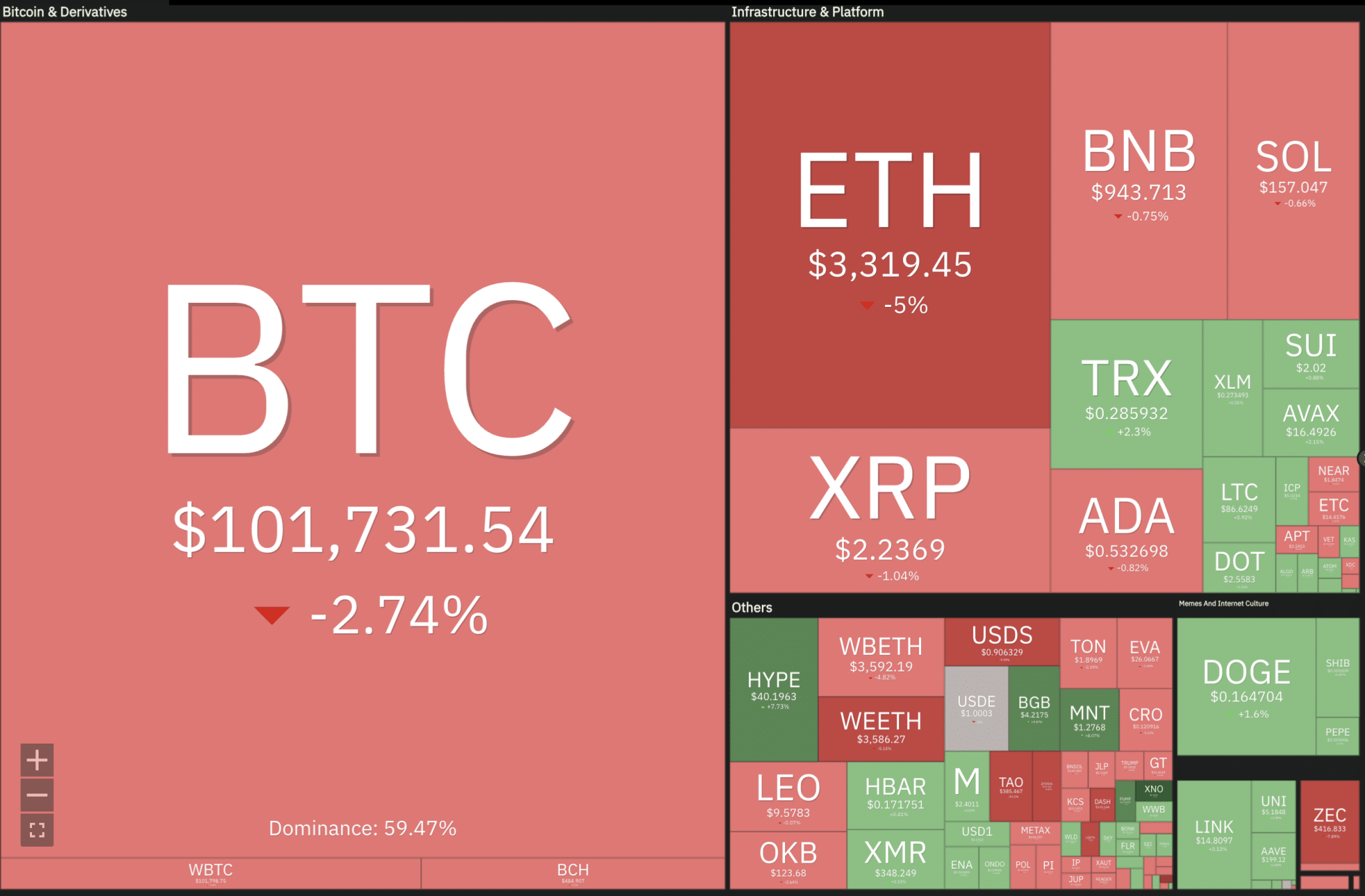 加密货币市场周二遭遇剧烈下跌,随着比特币和以太坊在全球经济不确定性中下挫,市值蒸发约2500亿美元。