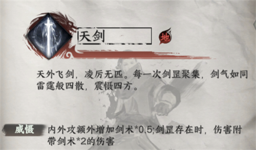 威慑内外攻额外增加剑术*0.5;剑罡存在时,伤害附带剑术*2的伤害