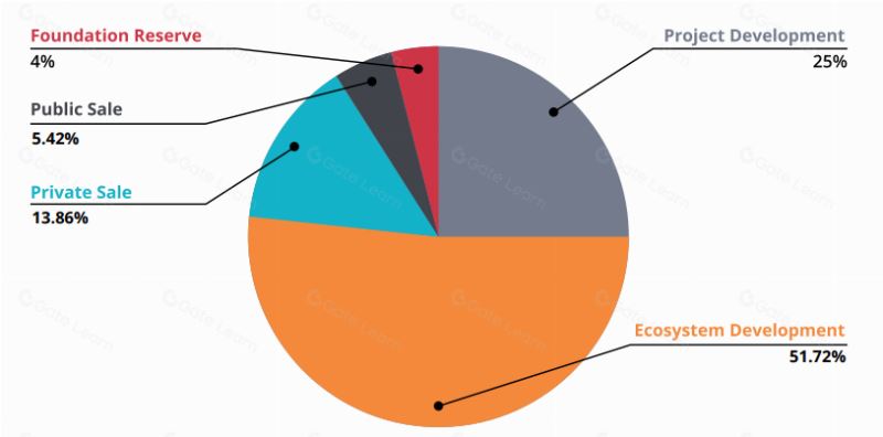 IMX 的总供应量为2,000,000,000枚,将在长达 4.5 年中逐步释放。基金储备:4%公售:5.42%私募:13.86%生态发展:51.72%协议发展:25%