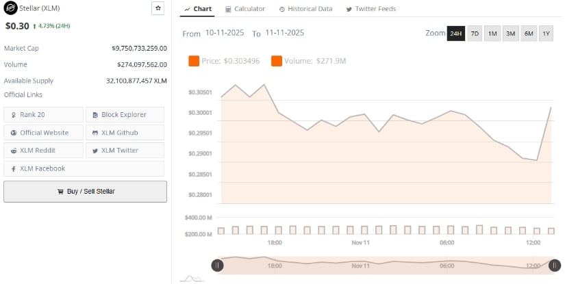 恒星币动态:XLM反弹至0.30美元势头增强,交易者瞄准0.40美元突破关口