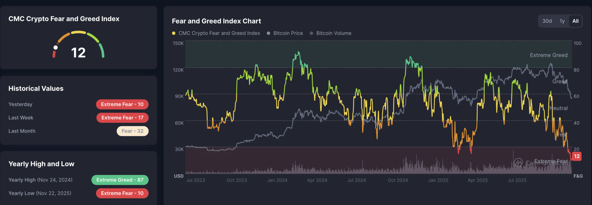 比特币恐惧贪婪指数近期骤降至8点,股市指标跌至6点,他称这种水平"极其罕见":"这种状态不会持续太久"。