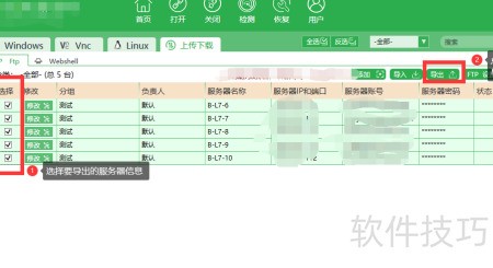 - 在主界面选中目标服务器后,直接点击导出即可完成操作。