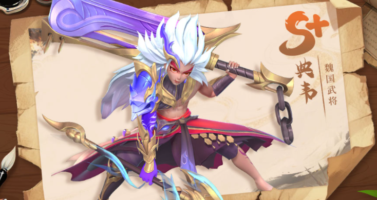 典韦的血战能够对单个敌人打出伤害,而他的大招不仅攻击敌方前排,并且造成伤害,还能使自己获得的反弹率。此技能使用后有几率让敌人陷入嘲讽状态,嘲讽会强制攻击施加者,帮助队友减轻伤害。典韦还具有一个被动技能,在每次受到普通攻击时可以回复怒气。此外,典韦的专属招式大大提高了添加嘲讽成功的概率至,并且神话装具可以在穿戴时增加攻击力,而绝世则在添加嘲讽时会使目标处于被控状态时额外降低其防御力两回合。