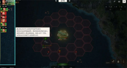 接着在旋转之后就会进入到战斗的界面,这就是回合制战斗。玩家就需要搞清楚三个点,分别是行动的顺序,战斗的目标,还有地图的格子。行动的顺序,主要就是看舰队的机动能力,屏幕的上方就会显示这个回合还有下一个回合的顺序。提前知道谁先出手,然后就可以做好战术的规划。战斗地图是六边形的格子,蓝色细边框,就是一个可以移动的区域,红色细边框,这是一个攻击的范围。点击格子之后,还可以预览移动以及攻击的路径,并不需要担心踩空。