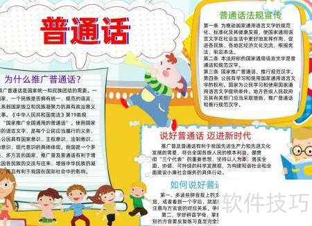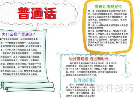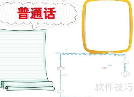 - 绘制与普通话相关的文字框,并进行装饰,使手抄报更美观。
