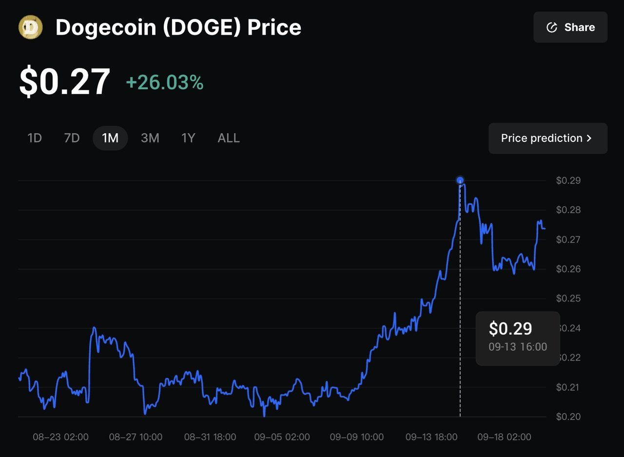 狗狗币价格在2025 年9 月飙升40% 的原因
