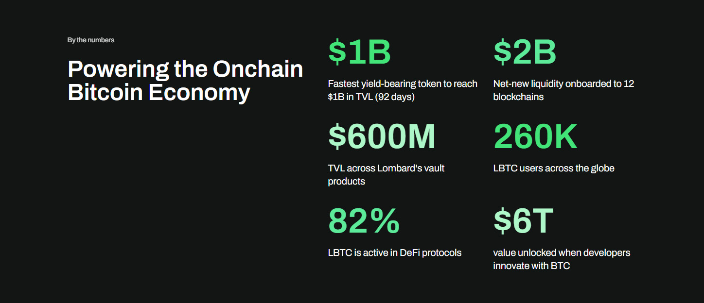 Lombard 是一个 DeFi 协议,它通过 LBTC 将比特币融入去中心化经济生态系统。LBTC 是一种流动性强、收益高的跨链代币,由 BTC 1:1 担保。该平台由一支曾在 Polychain、Babylon、Argent、Coinbase 和 Maple 等公司工作过的专业团队于 2024 年 4 月创立,已从 Polychain Capital、富兰克林邓普顿和币安实验室筹集超过 1.1 亿美元,致力于将比特币资本市场引入链上。