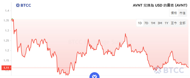 截至当地时间9 月15 日下午5:29,AVNT 加密货币在BTCC 市场的交易价格为1.22 美元,较前24 小时上涨49.29%,在过去7 天上涨了312.25%。目前,AVNT 在CoinMarketCap 上排名第162 位,市值为295,060,510.82 美元。
