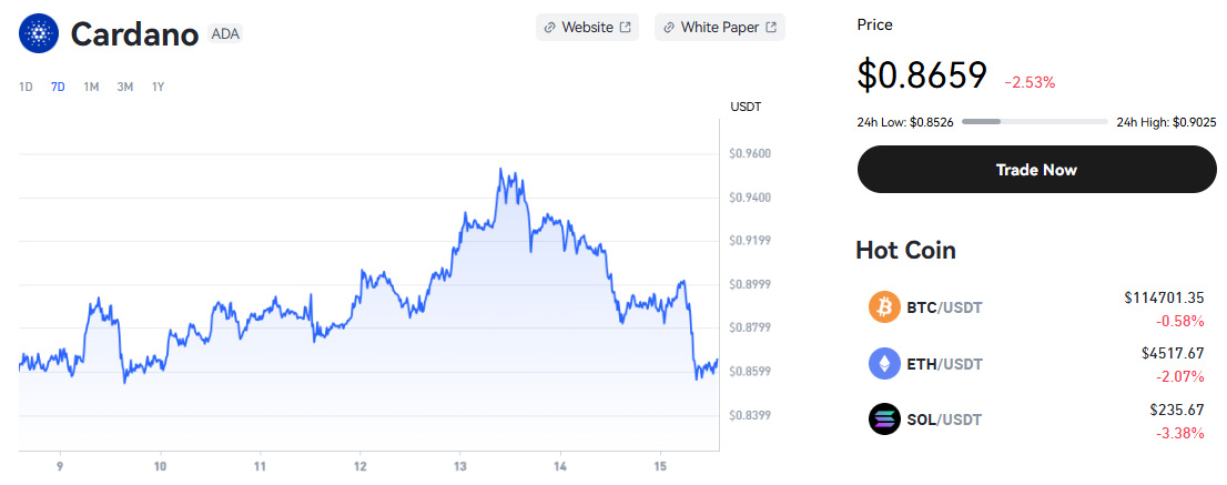 ADA 价格近期已升至 0.89 美元至 0.95 美元区间,截至本文撰写时,ADA 交易价格约为 0.90 美元。追踪 ADA 价格走势图的分析师指出,其价格一直维持在 50 天移动平均线上方,这支持了对 2025 年底 ADA 价格谨慎乐观的预测。