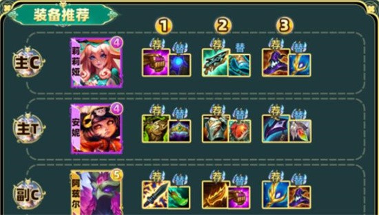 1、这套阵容以莉莉娅作为主c,安妮作为主T,但是这两张都是4费卡,在前期最好使用3山海进行过渡。使用大嘴和大虫子打工,并且需要多准备一张大嘴进行替换。
