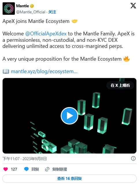 ApeX 与Mantle 官方互动频繁,Bybit 也加入声援。