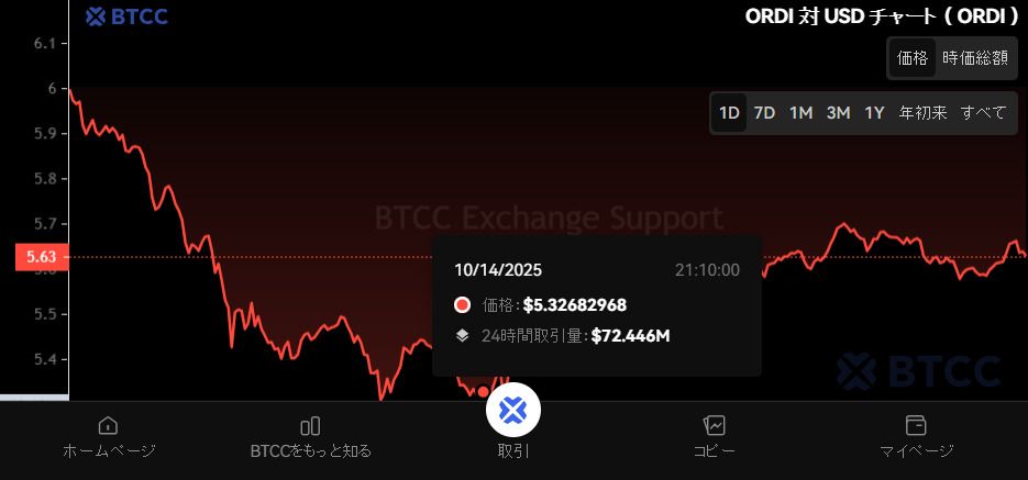 截至2025年9月23日,ORDI(Ordinals)价格徘徊在1,262.26日元左右,较过去24小时下跌9.01%。