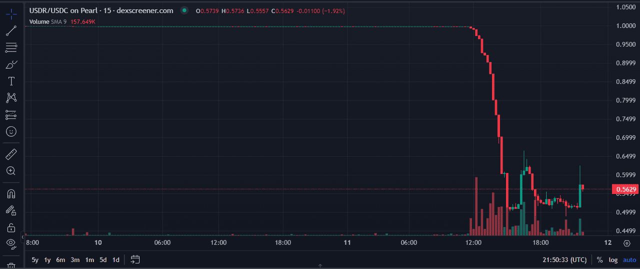 2023 年 10 月,由代币化房地产和 DAI 支持的稳定币 USDR 在大规模赎回耗尽其 DAI 缓冲后,跌至约 0.51 美元。剩余的抵押品,主要是非流动性房地产代币,无法足够快地出售以兑现提款,导致价值被困在链上。尽管帐面上超额抵押,但由于资产流动性与赎回速度不匹配,挂钩崩溃。该案例凸显了「有支持」并不总是意味着「有流动性」,与真实世界资产挂钩的稳定币在赎回压力下仍然可能失败。