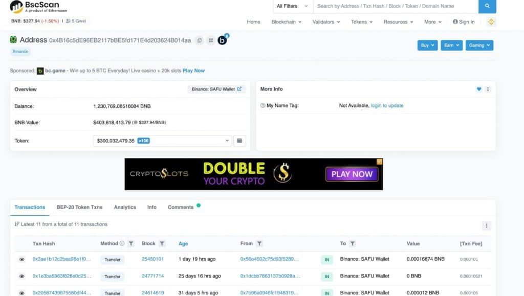 2022年币安SAFU账户里已达到10亿美元,不过由于币价波动,目前更新的总价值约为8亿美金,具体可以查看BlockChair钱袋、BscScan钱袋地址。