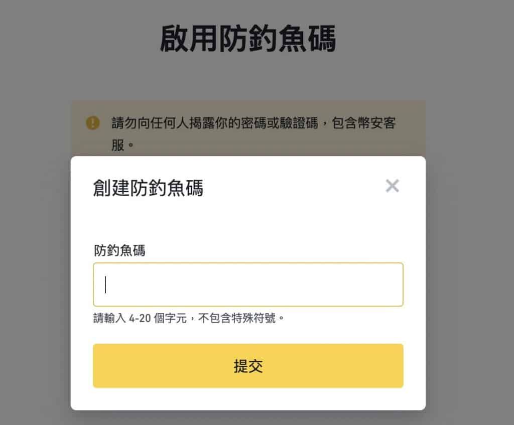 「防钓鱼码」需要设置4至20个字元,不包含特殊字符。