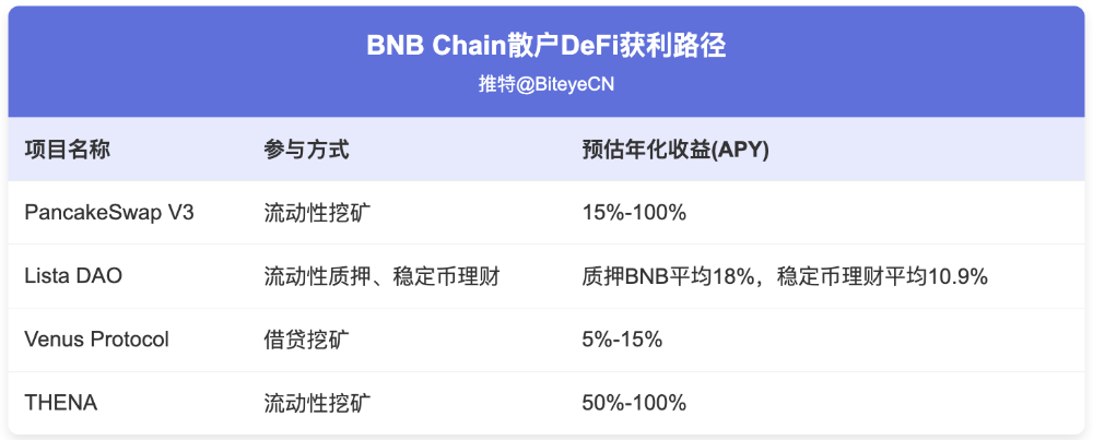 对于散户来说,在链上积极参与BNB生态,是获得价值增量的重要途径,可以通过DeFi、RWA、Meme等多种方式参与BNB Chain的红利。