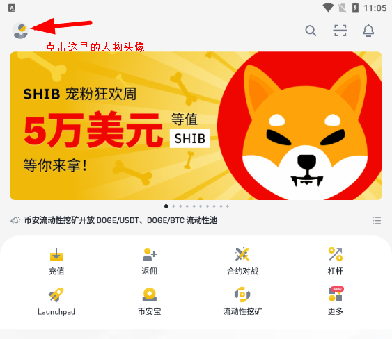 币安专业版转换简版的话还是很简单的,打开币安APP,点击左上角的人物头像;