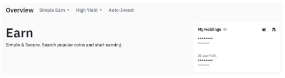 2. 页面将跳转至币安理财界面。在此处,您可以看到赚币、高收益型以及定投计划等现有产品。