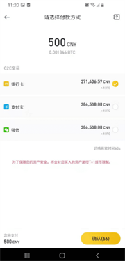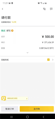 5.在输入了500软妹币作为购买金额后,点击“购买BTC”按钮。这将表明您的购买意图,并开始处理您的订单。