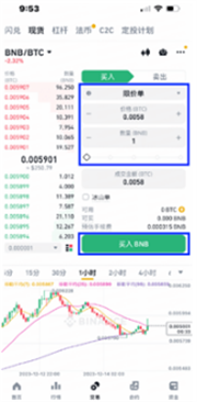 4.确认价格和数量后,点击“买入BNB”提交订单。系统会检查账户余额,确保足够后,订单就会下到市场等待成交。