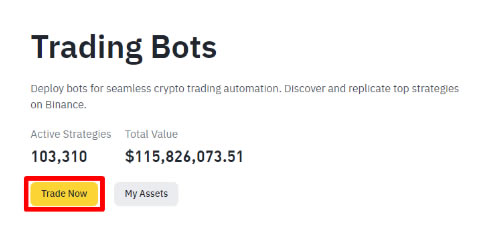3. 下一步,您会看到交易机器人落地页。点击【立即交易】,系统将跳转至交易页面。