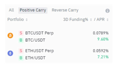 上述示例称为反向套利策略。在相反的情况中,该策略称为正向套利(即在资金费率为正时开立合约空头头寸,并在现货市场买入等值金额,以对冲市场波动)。