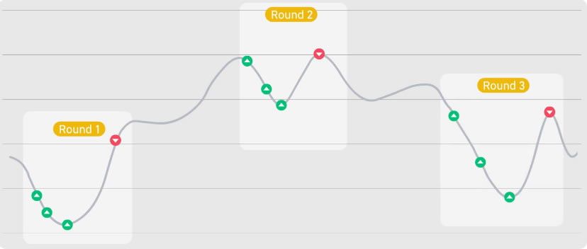 DCA 代表美元成本平均法。这种投资策略涉及定期购买资产,以获得更优厚的平均价格。借助现货 DCA,您可以不断分散买入和卖出订单,从而有助于降低波动性的影响。