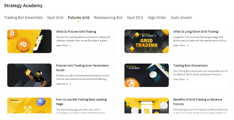 有关不同机器人和策略的更多详细信息,请向下滚动至交易机器人落地页底部,查看策略学院和常见问题。