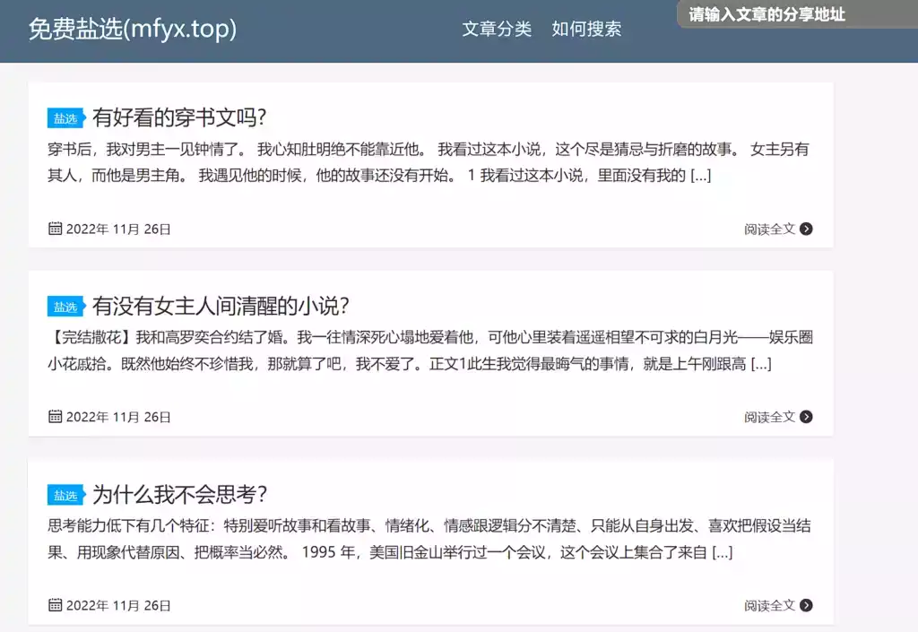 前有我不是药神、我不是盘神、现有我不是盐神!该网站免费分享一些盐选会员文章,如果你再某乎上看到了一些文章让你没看够,那就复制标题/内容第一句话到这个网站里面来搜一搜吧!一般会找到惊喜~