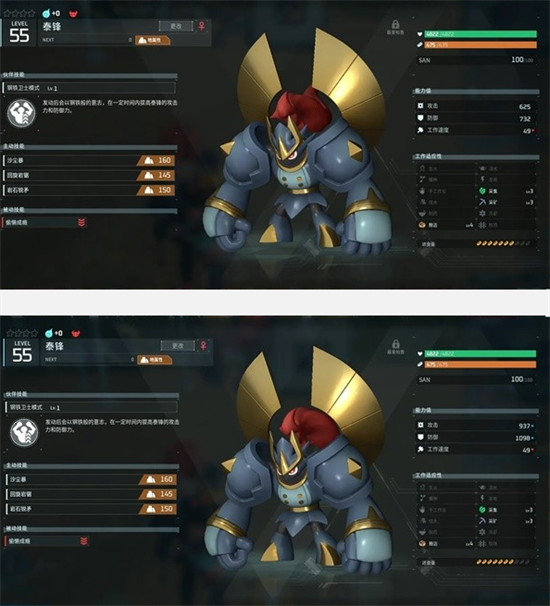防御力增加366,攻击提升312。单纯的0强化泰锋开技能都能达到这样的增幅甚至远超同0强化的铁拳猿毫无疑问他无论是在PVP还是PVE都能傲视群雄(阿努比斯,现在谁才是岩帝?)
