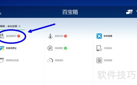 - 进入百度卫士主界面,点击右侧百宝箱图标即可。