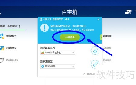 - 进入百宝箱界面,点击左侧浏览器保护图标,系统将自动开始安装该功能。