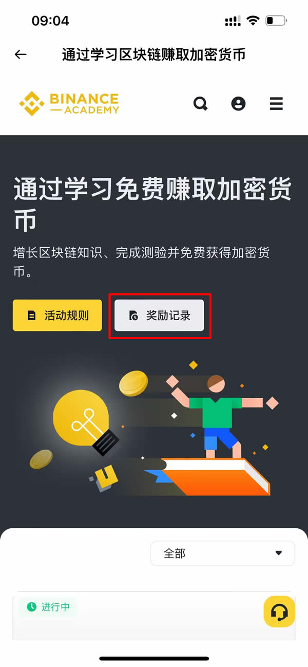 币安帐户需要完成身份验证,才有资格领取奖励奖励数量有限,完成课程后务必正确回答测验问题才有资格领取奖励取得奖励资格会在48小时内发送至帐户内,可至「学习赚币」内的「奖励记录」确认