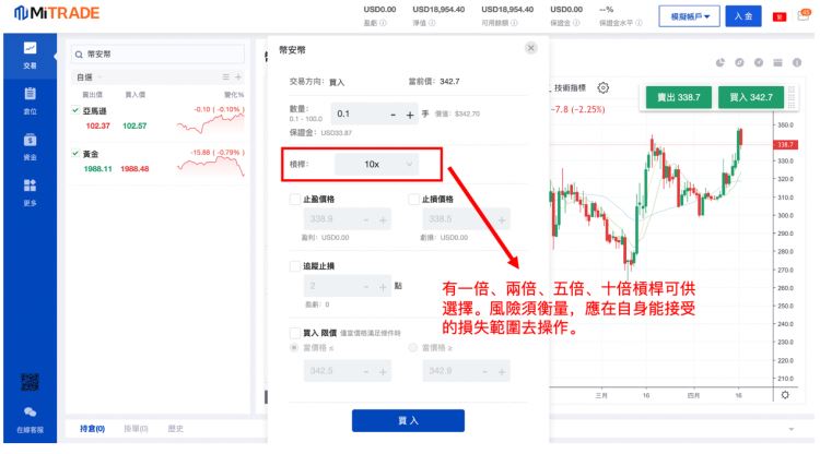 很简单,如同购买股票一般,把它买进来,等待价格上升。现在也有很多人喜欢透过CFD差价合约的方式去买进投资标的。笔者个人在Mitrade上也有许多操作,CFD的方便之处在于操作方便,且杠杆倍数可根据自身可以接受的风险来调整。如果你使用的是Mitrade的专业帐户,最多可以开到十倍的杠杆。