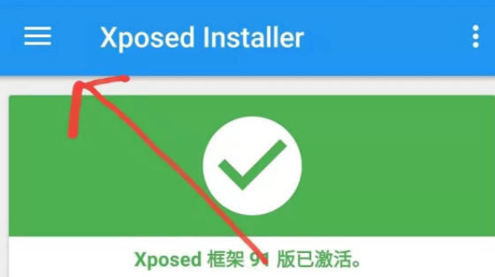 7、点击打开框架里第三个APP "Xposed Installer";打开后点击首页左上角的菜单按钮。