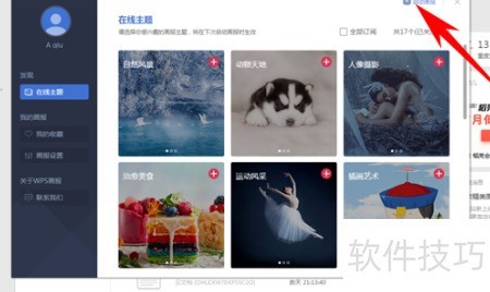 - 打开在线主题对话框,点击右上角启动画报功能。