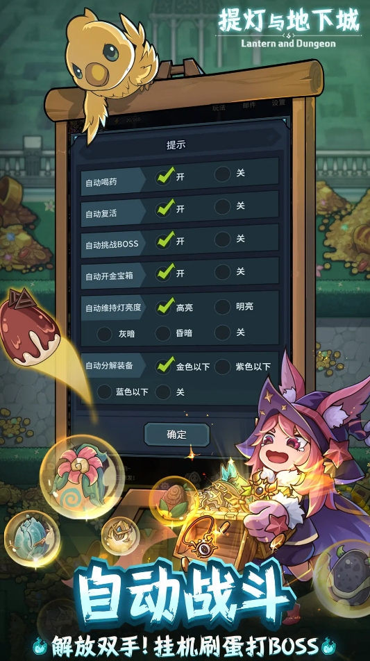 提灯与地下城是一款融合地牢探险和装备养成元素的刷宝类游戏。在这个游戏中,玩家将深入层层递进的地下城,面对不断刷新的怪物群,通过击败敌人获取稀有掉落,逐步强化自身实力。游戏采用自动战斗机制,无需手动操作技能释放,只需提前配置好技能组合,系统便会自动完成战斗流程。这种简化操作的方式降低了上手门槛,同时保留了刷装备、闯关卡的核心乐趣,适合喜欢轻松刷宝的玩家。