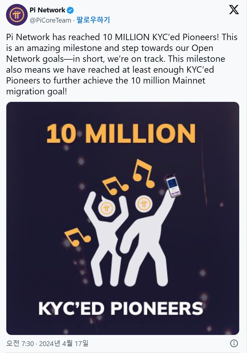 热门移动挖旷项目 Pi Network 于 4 月 18 日宣布,该平台已达到重要里程碑,Pi Coin (PI) KYC 用户数突破 1000 万。