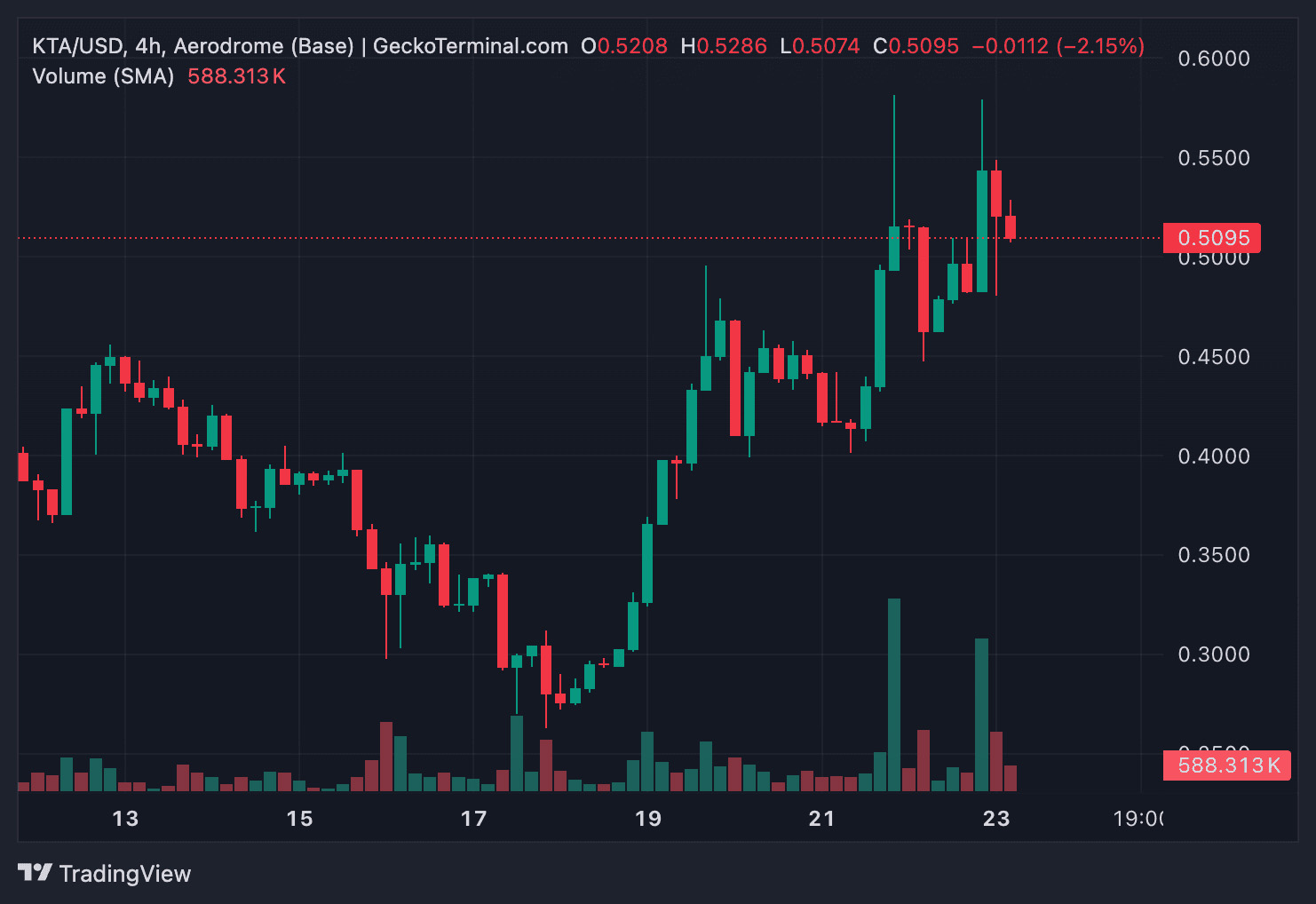 2025年5月初,KTA网络的原生加密货币KTA上线仅两个月,便开始迅速崛起。这得益于人们对该网络惊人的TPS(每秒交易量)容量的热情,以及其他因素,其中最重要的因素是该项目与谷歌前首席执行官埃里克·施密特(Eric Schmidt)的合作,施密特是Keeta的顾问和投资者。截至6月中旬,KTA仍然是加密货币市场中涨幅最大的货币之一,仅在过去两个月就上涨了557.8%。