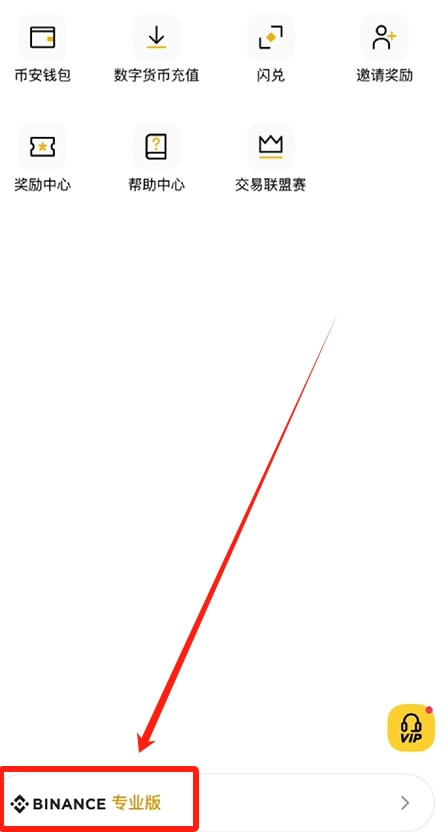 如果你发现你的币安APP,进去之后是很简洁的,你要怎么办才能把它切换成正常的、完整版的币安呢?你就点击左上角的9个点,然后在最下方找到币安专业版的,把它切换成专业版的就行了。
