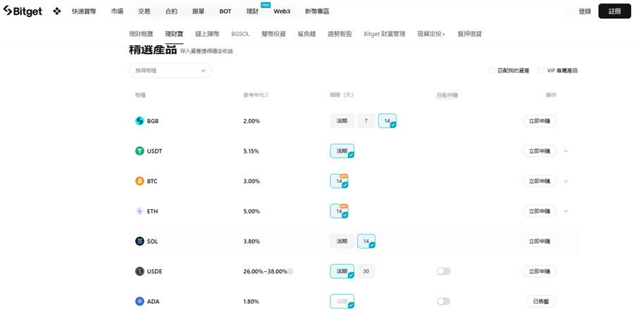 特点:通过将加密货币锁定于币安平台上参与区块链网络的运行和验证获得奖励。收益:根据不同币种和区块链网络的机制,质押收益各不相同,有些币种的年化收益率可达两位数。适用人群:希望持有加密货币并支持特定区块链网络的长期投资者。常见币种:ETH、SOL算是比较热门的质押类型。