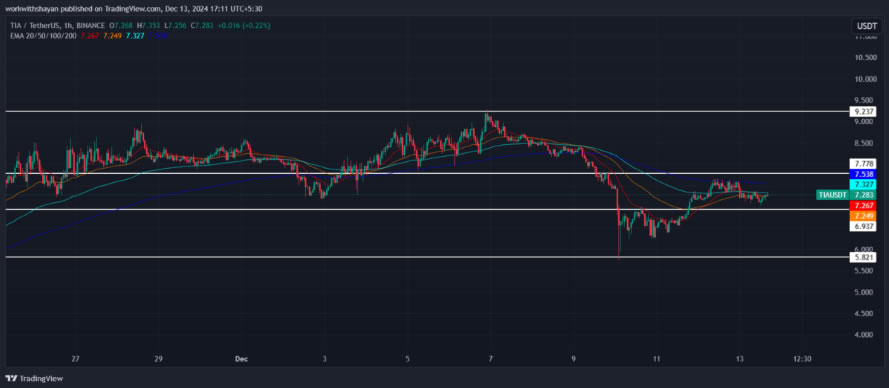 12 月 13 日的 TIA 价格分析证实,TIA 正面临 7 美元附近的看涨压力。目前,买家的目标是快速突破直接阻力通道。