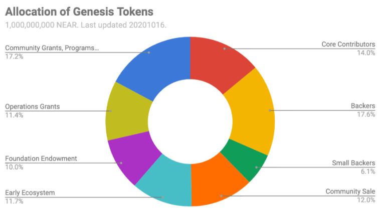 根据以下代币分配,NEAR 的总供应量为 10 亿个代币。